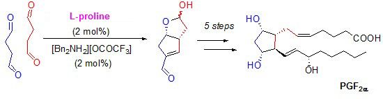 2012年,Nature上報道了G. Coulthard和W. Erb等以脯氨酸催化合成前列腺素的新方法,這是典型的應用實例: