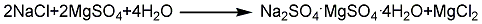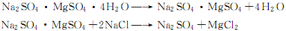 3.轉化法系以氯化鉀生產的副產品高低溫鹽做原料制取無水硫酸鈉。在一定溫度和配料條件下,經過三段轉化,硫酸鎂和氯化鈉先轉化成白鈉鎂礬,再轉化為無水鈉鎂礬,最后轉化成無水硫酸鈉。整個轉化過程為連續逆流操作。漿料靠機械推動和提升,液體依位差而逆向溢流,各段之間互相聯系和影響,第一段轉化控制在Ph值3~4,溫度55~70℃下發生反應,生成白鈉鎂礬漿料進人一段沉降器增稠后,再送到二段轉化槽;二段轉化Ph4~5,溫度在100℃左右;第三段轉化條件控制Ph5~6,溫度55℃左右在攪拌下,無水鈉鎂礬與氯化鈉水溶液反應生成無水硫酸鈉,經離心分離、干燥,制得無水硫酸鈉。其反應方程式如下: