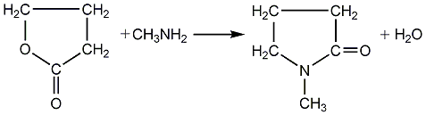 2、γ-丁內(nèi)酯與甲胺反應,反應完畢后冷卻,去除過量的甲胺和水使產(chǎn)物濃縮,再經(jīng)減壓蒸餾即可。