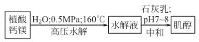干燥植酸鈣與水以1∶(3~3.5)比例打漿。若用水膏狀植酸鈣可直接水解。常壓水解需加催化劑,水解周期長,肌醇得率低。加壓水解可提高得率,縮短生產周期。水解完成后,可加入石灰乳使可溶性的磷酸鹽和磷酸酸式鹽轉化為不溶性的鹽而除去。加入石灰乳中和至ph8~9即可過濾。然后加入1.5%的活性炭煮沸保溫15~20min,以除去色素及雜質。脫色液再在32℃進行結晶,可得粗品肌醇。粗品可用蒸餾水洗去無機酸和無機鹽,比較先進的方法是用陰、陽離子交換樹脂除去無機酸和無機鹽,避免了水洗造成的肌醇損失,而且產品質量也更好。精制后的肌醇在60~70℃下烘干后可得成品。