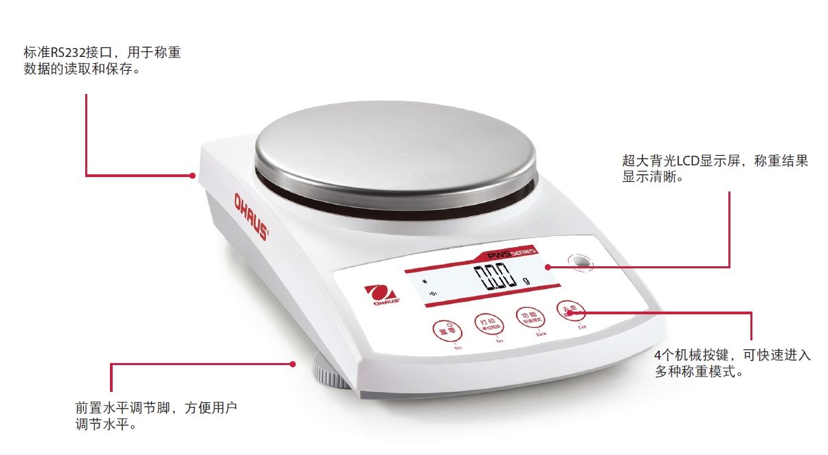 3種常用稱重模式、標(biāo)配RS232標(biāo)準(zhǔn)通訊接口、自帶內(nèi)部校準(zhǔn)功能(僅內(nèi)校型號),三者完美組合,是適用于日常稱量的明智選擇。